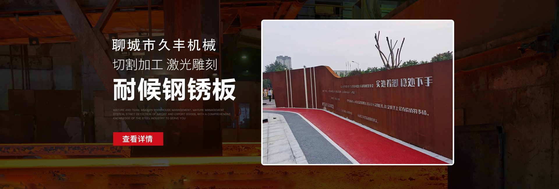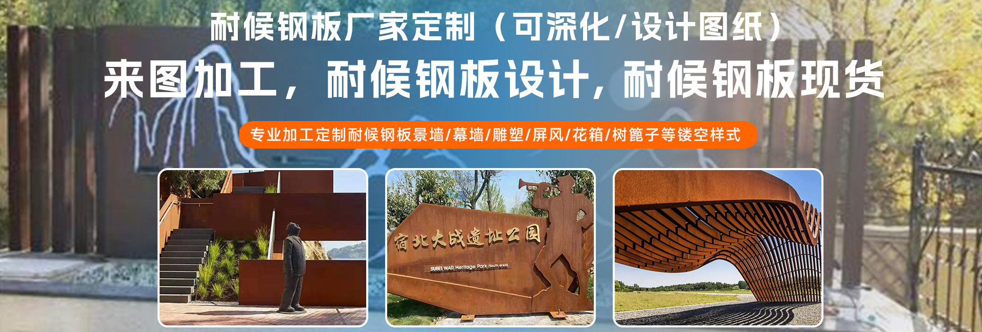 聊城市久豐機(jī)械有限公司主營(yíng):耐候板,耐候鋼板,耐候銹鋼板,考登鋼板,235NH耐候板,345NH耐候板,355NH耐候板,09CUPCrNi-A耐候鋼板,耐候銹蝕鋼板,耐候紅銹鋼板,耐候幕墻銹鋼板,耐候鋼板生銹,耐候鋼板生銹藥水,鋼板生銹藥水,鋼板發(fā)銹劑,耐候銹鋼板鍍膜固化劑等產(chǎn)品應(yīng)用包括幕墻、鏤空幕墻、火爐、樹池、園林立體雕塑、鏤空小動(dòng)物、水池、橋梁等。 20世紀(jì)初,國(guó)外一些前衛(wèi)的藝術(shù)家將鋼材用于雕塑創(chuàng)作。由于鋼鐵銹蝕是材料自身的一種自然狀態(tài),十分符合藝術(shù)表達(dá)的真實(shí)性原則,久而久之,銹蝕鋼材成為現(xiàn)代景觀造型藝術(shù)設(shè)計(jì)的材料之一。 銹蝕鋼板會(huì)隨著時(shí)間的變化而發(fā)生變化,其色彩明度和飽和度比一般的構(gòu)筑物材料要高,因此在園林…
